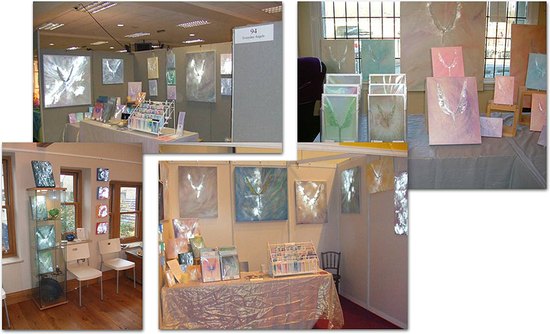 Over the years I have attended many Mind Body Spirit Events, all over the UK, and always accompanied by a selection of Angels, from “pocket money” cards and prints to larger investment pieces . My table was always very vibrant!