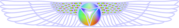 The Divine Light is represented by the rainbow colours carried within the wings and the central disc.